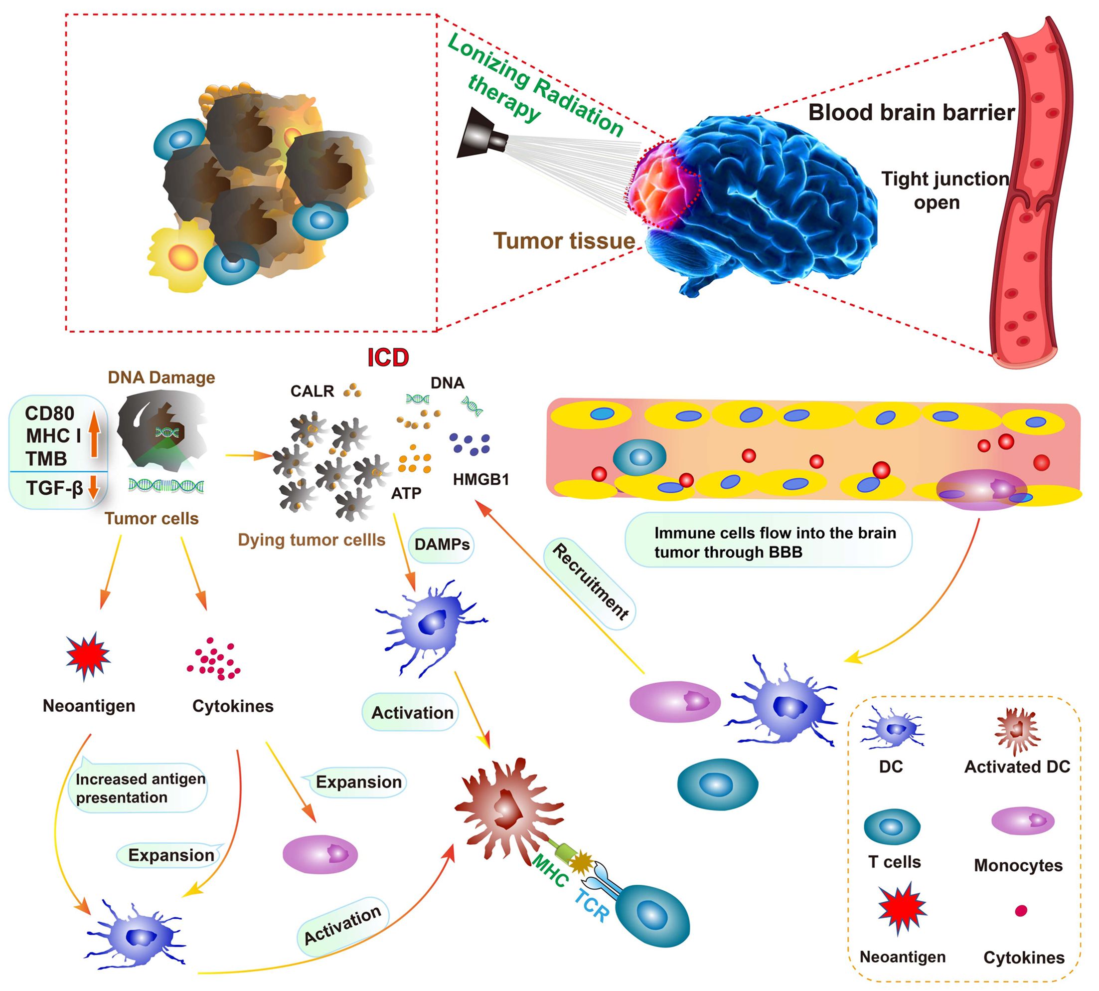 The prognosis of brain metastases (BM) is traditionally poor. BM are mainly treated by local radiotherapy, including stereotactic radiosurgery (SRS) or whole brain radiation therapy (WBRT). Recently, immunotherapy (i.e., immune checkpoint inhibitors, ICI) has demonstrated a survival advantage in multiple malignancies commonly associated with BM. Individually, radiotherapy and ICI both treat BM efficiently; hence, their combination seems logical. In this review, we summarize the existing preclinical and clinical evidence that supports the applicability of radiotherapy as a sensitizer of ICI for BM. Further, we discuss the optimal timing at which radiotherapy and ICI should be administered and review the safety of the combination therapy. Data from a few clinical studies suggest that combining SRS or WBRT with ICI simultaneously rather than consecutively potentially enhances brain abscopal-like responses and survival. However, there is a lack of conclusion about the definition of “simultaneous”; the cumulative toxic effect of the combined therapies also requires further study. Thus, ongoing and planned prospective trials are needed to further explore and validate the effect, safety, and optimal timing of the combination of immunotherapy with radiotherapy for patients with BM.
