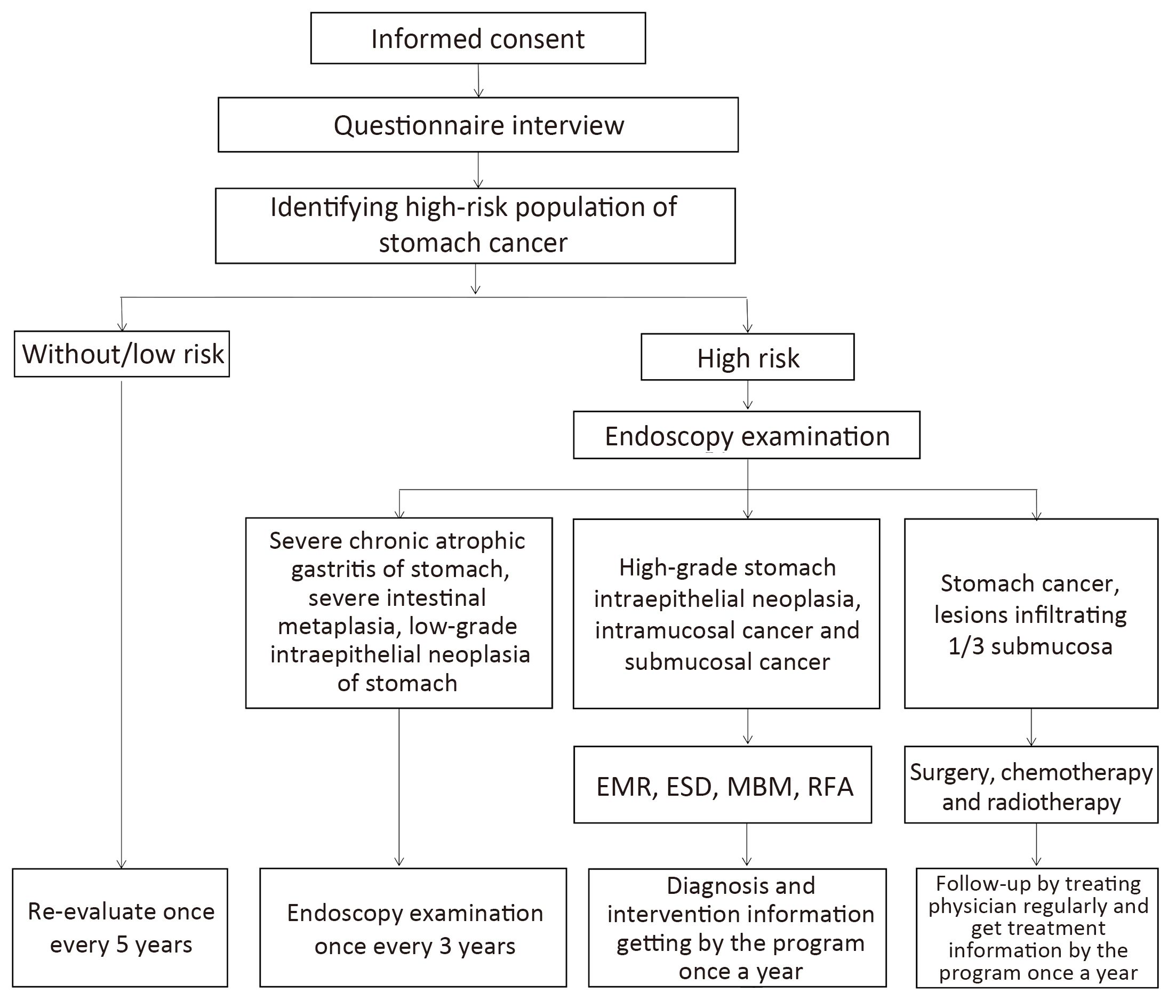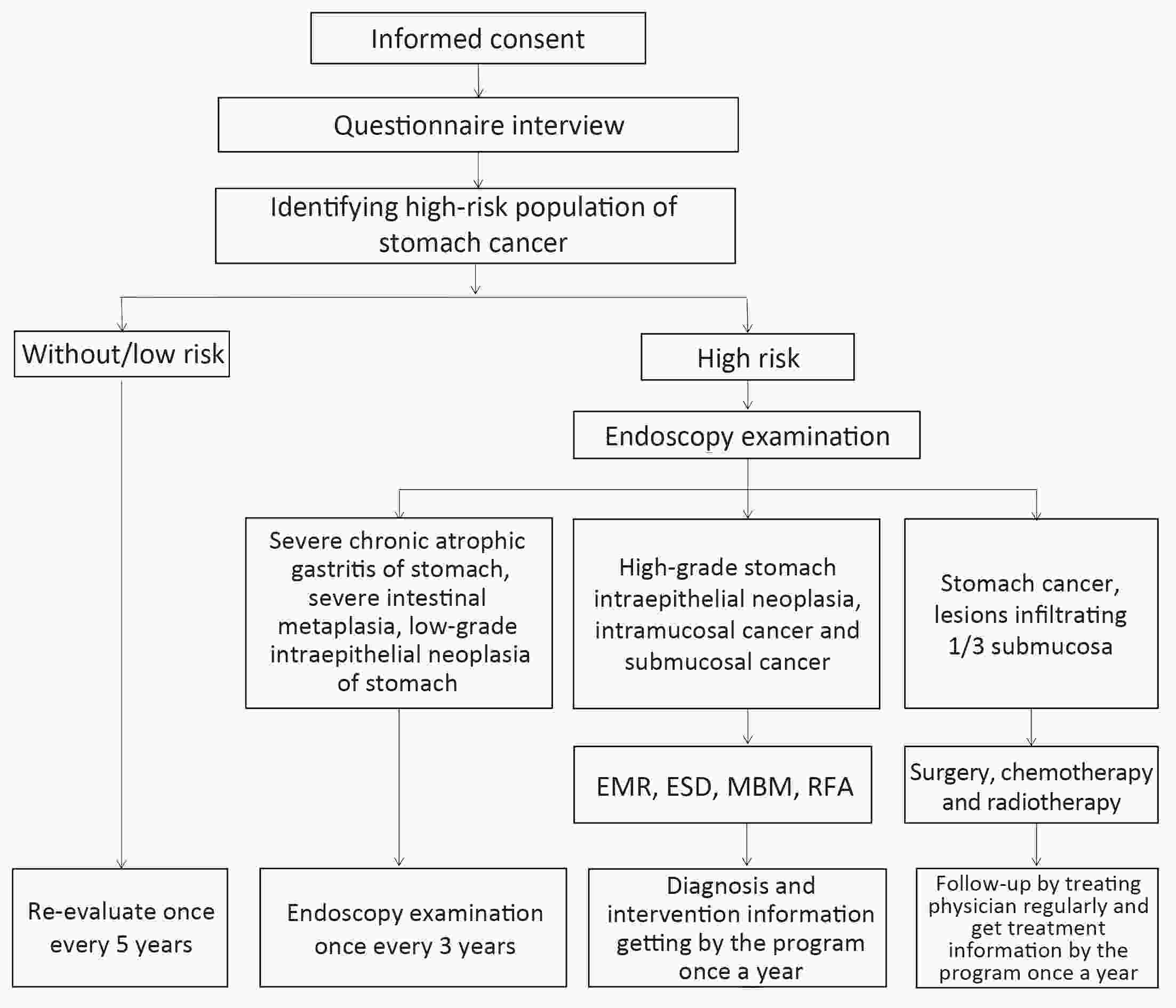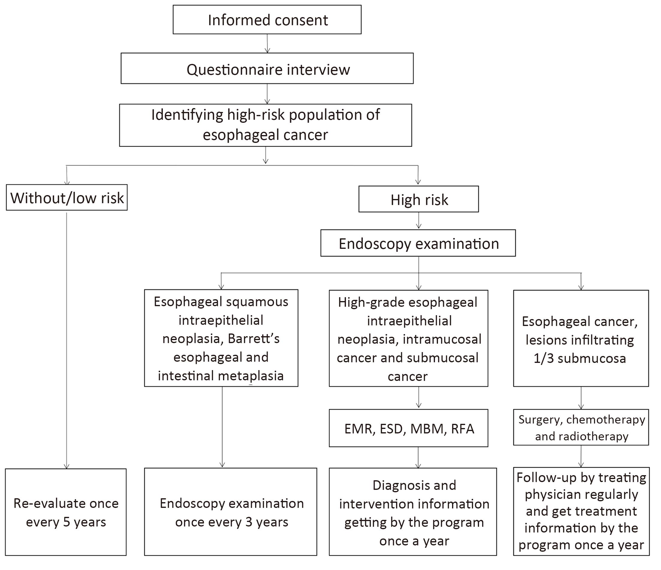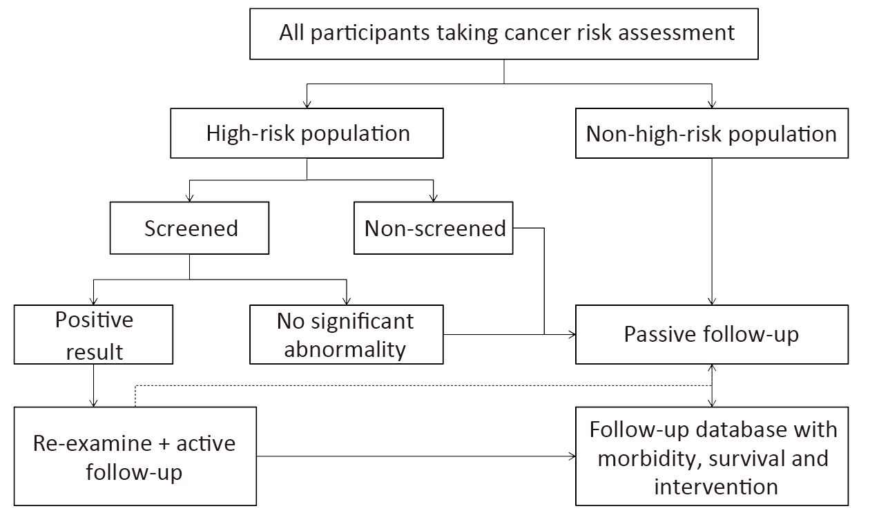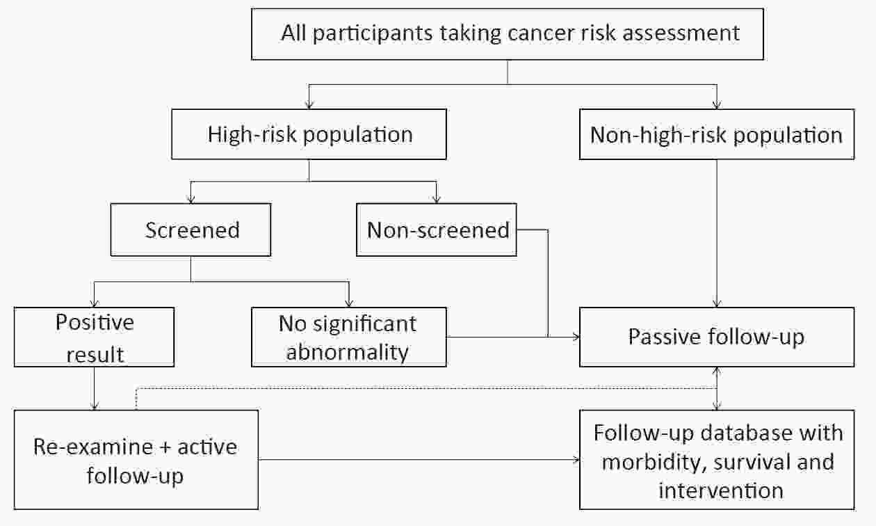 ObjectiveNational Health Commission of the People’s Republic of China collaborated with many ministries and commissions government and initiated a population-based cancer screening program in high-risk area of rural China, targeting three types of cancer that are most prevalent in these areas, including esophageal, stomach and liver cancer. This study protocol was reported to show the design and evaluate the effectiveness of cancer screening and appropriate screening strategies of three cancers in rural China. Methods and analysisA two-step design with cancer risk assessment based on questionnaire interview, Hepatitis B surface antigen (HBsAg) test strip and subsequent clinical intervention for high-risk populations was adopted free of charge at the local hospitals designated in the program. Ethic and disseminationThis study was approved by the Institutional Review Board of Cancer Hospital, Chinese Academy of Medical Sciences and Peking Union Medical College. The results will evaluate the effectiveness of cancer screening and appropriate screening strategies in rural China.